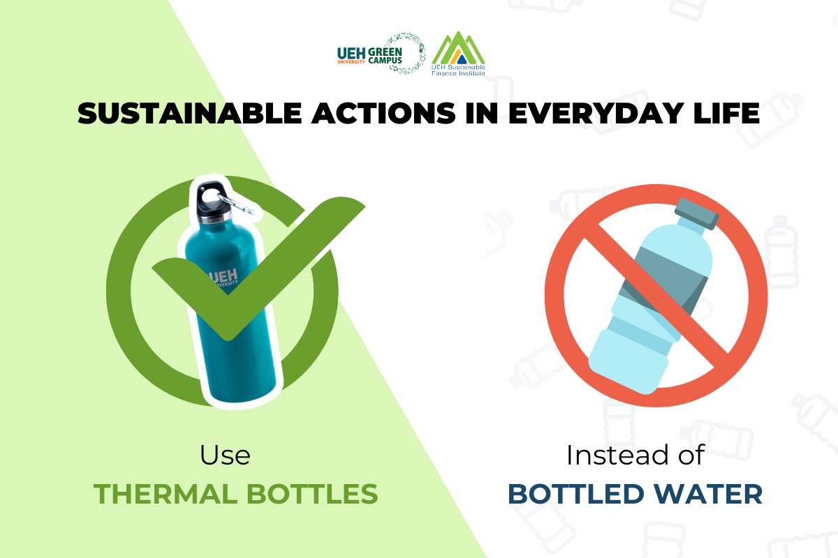 With the above facts, one of the simple but effective actions in protecting the green planet is to use thermal bottles as a replacement for bottled water every day. The image of UEH's thermal bottle, along with the message from the Institute of Sustainable Finance, is a strong reminder of each person's responsibility to protect the planet.