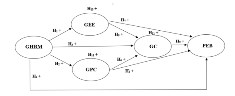 Keywords: Green human resource management, green psychological atmosphere; empowering employees with green initiatives; green commitment; environmentally friendly behavior.