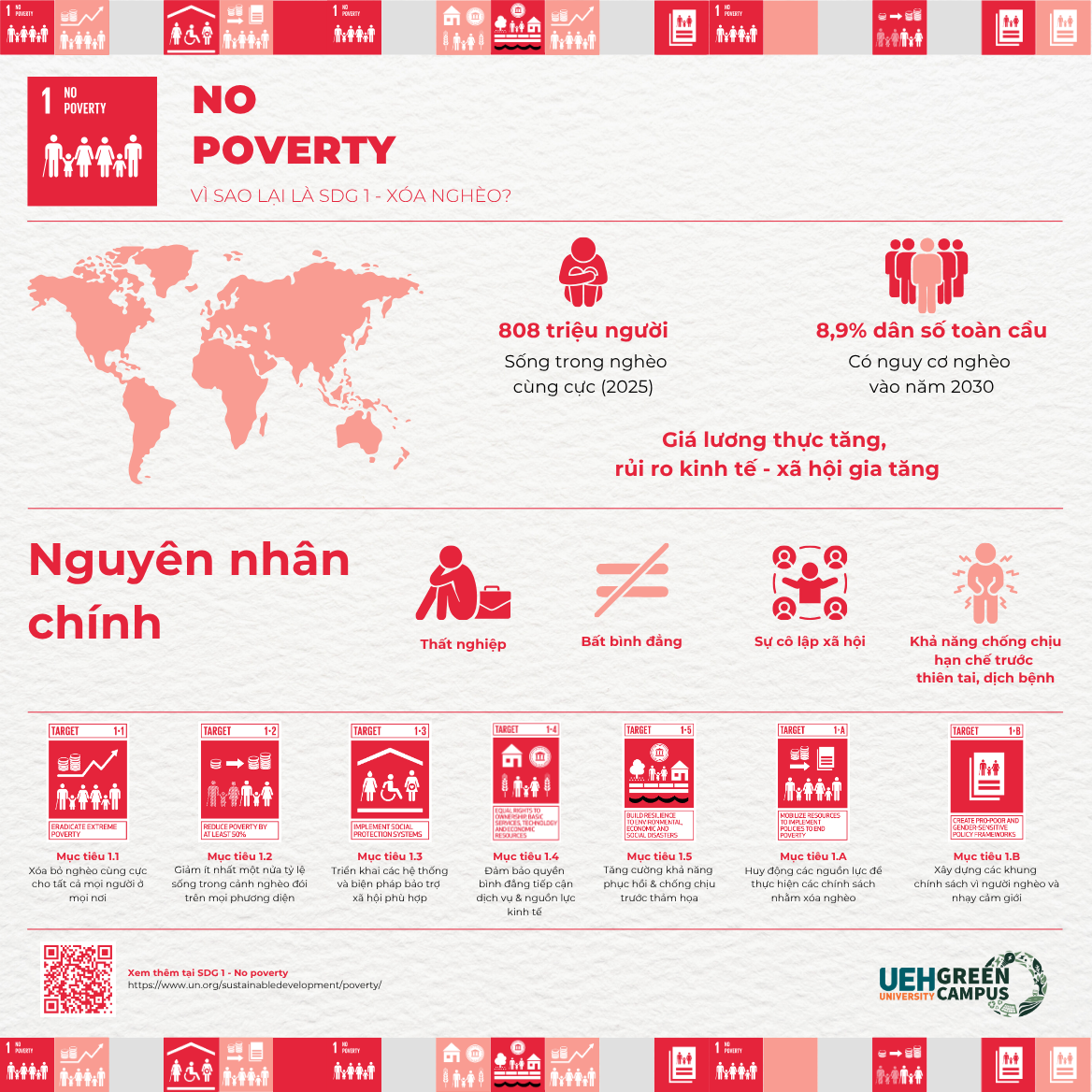 Infographic những đóng góp của UEH cho SDG 1 - No Poverty (Xóa nghèo)