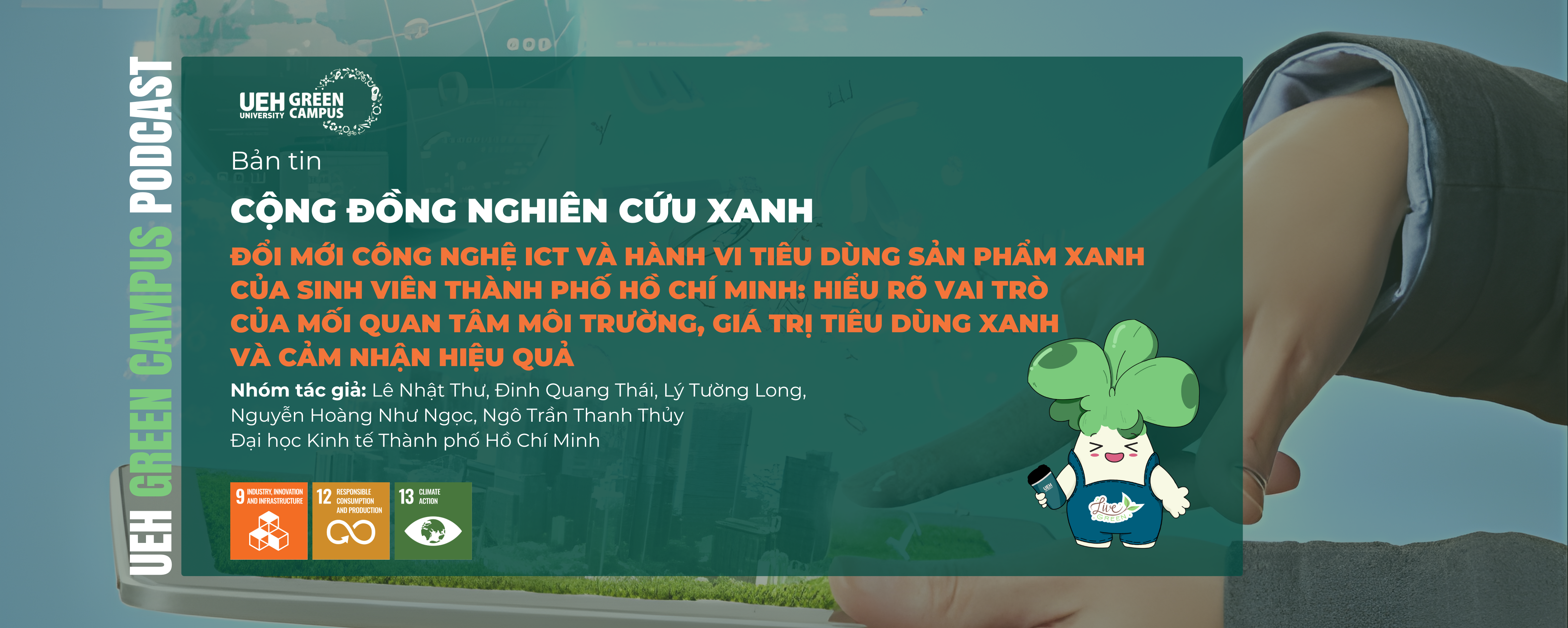 Bài nghiên cứu đã gián tiếp đóng góp cho SDG 9, 12, 13. Xem toàn bộ bài nghiên cứu “Đổi mới công nghệ ICT và hành vi tiêu dùng sản phẩm xanh của sinh viên Thành phố Hồ Chí Minh: Hiểu rõ vai trò của mối quan tâm môi trường, giá trị tiêu dùng xanh và cảm nhận hiệu quả” TẠI ĐÂY