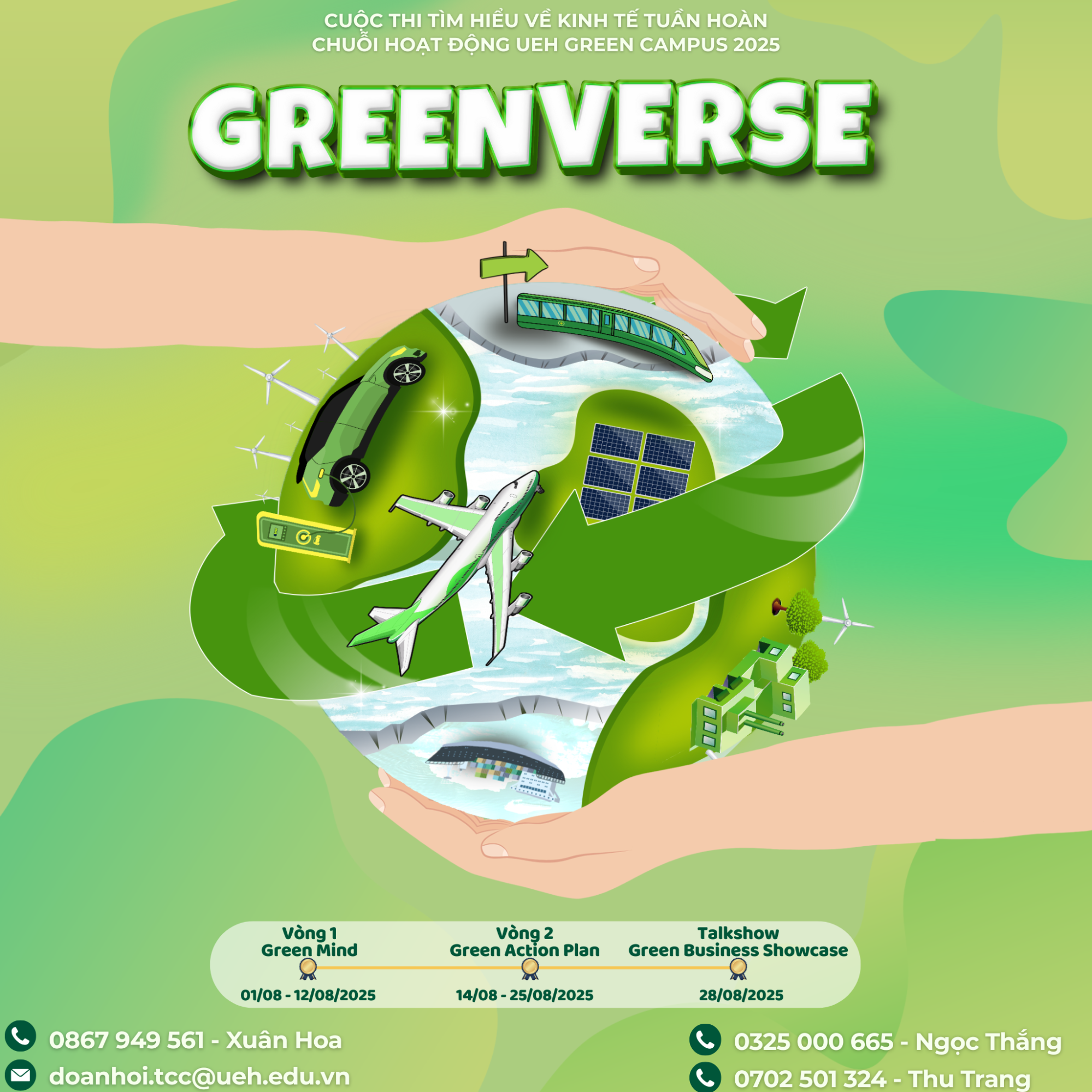 Cuộc thi tìm hiểu về kinh tế tuần hoàn “GreenVerse” thuộc chuỗi hoạt động UEH GreenCampus đã diễn ra từ ngày 31/07/2025 đến ngày 28/08/2025 với 02 hoạt động đã t