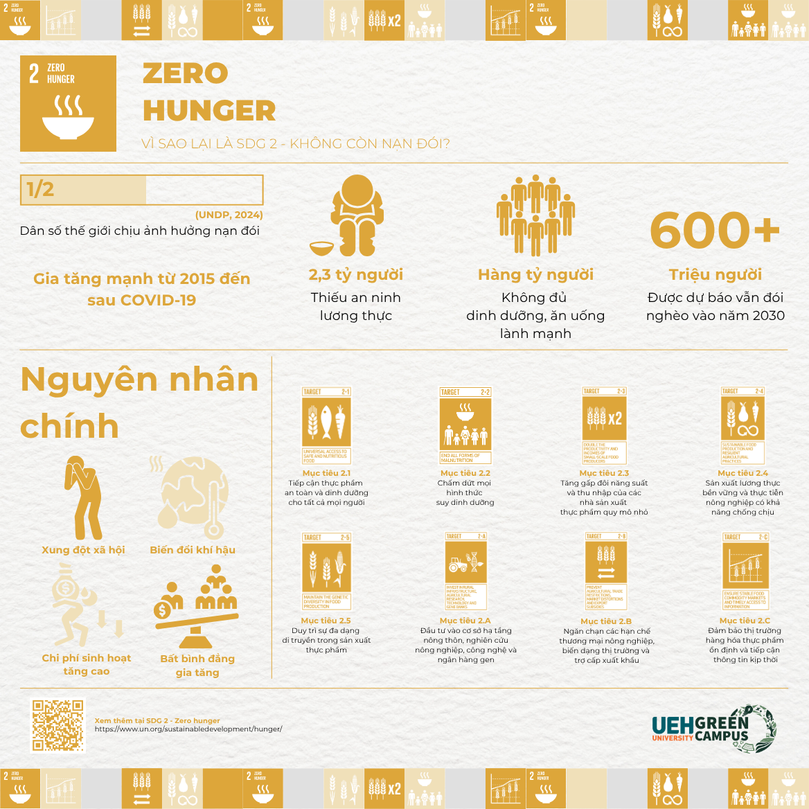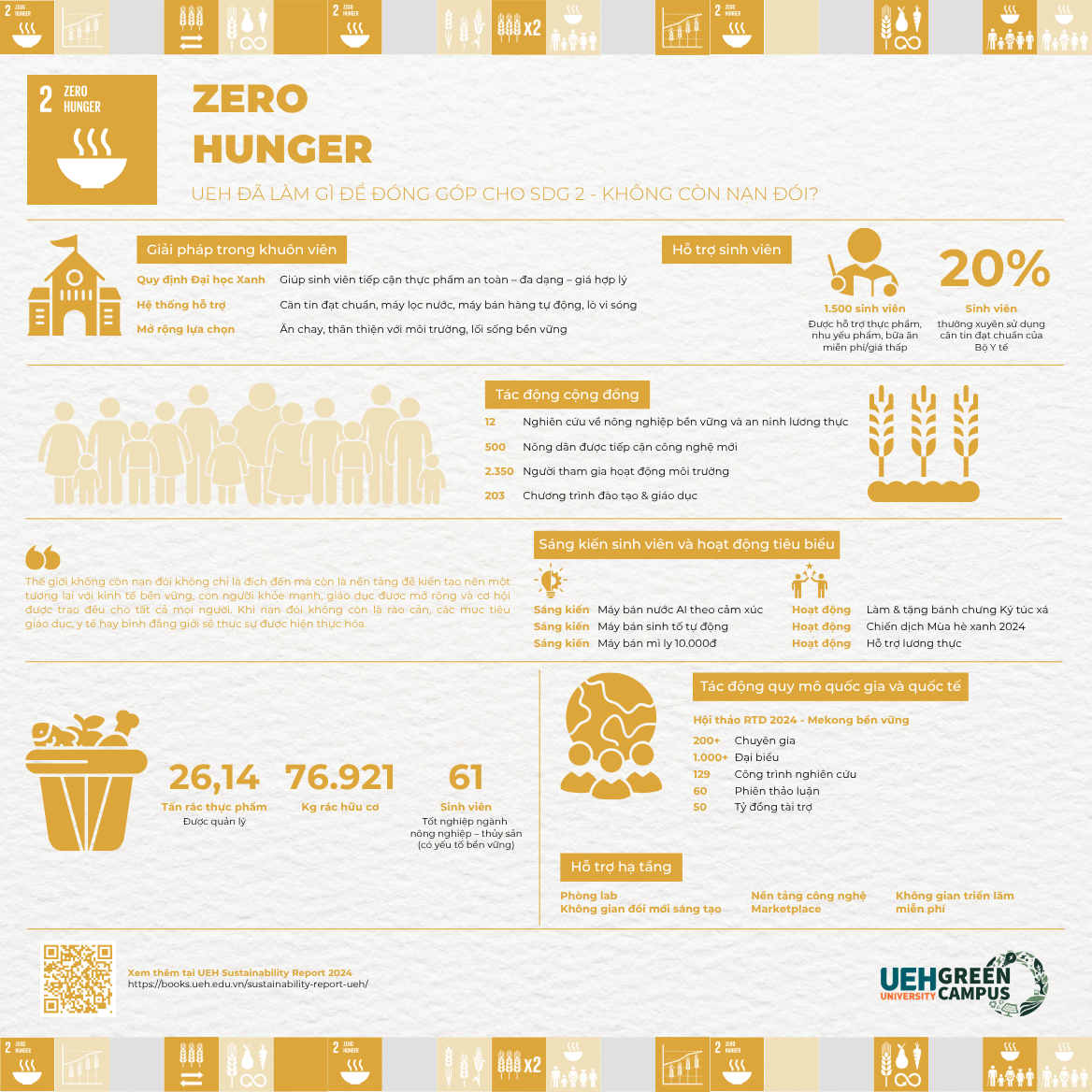 Infographic những đóng góp của UEH cho SDG 2 - Zero Hunger (Không còn nạn đói)