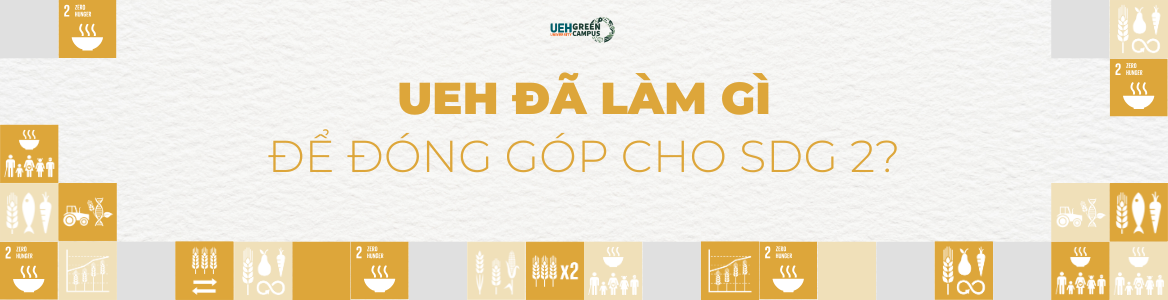Tại UEH, SDG 2 - Zero Hunger được triển khai thông qua việc đảm bảo an ninh lương thực ngay tại khuôn viên trường. Cụ thể, “Quy định Đại học Xanh” đã góp phần giúp sinh viên có thể dễ dàng tiếp cận thực phẩm an toàn, đa dạng với mức giá hợp lý thông qua hệ thống căn tin đạt chuẩn, máy lọc nước, máy bán hàng tự động và các tiện ích khác. Đồng thời, khoảng 1.500 sinh viên được trực tiếp hỗ trợ thực phẩm, nhu yếu phẩm, các bữa ăn miễn phí hoặc chi phí thấp thông qua các chương trình tình nguyện, hoạt động ký túc xá và chiến dịch ngoại khóa. Khảo sát năm 2024 ghi nhận khoảng 20% sinh viên UEH thường xuyên sử dụng căn tin, nơi đạt chuẩn an toàn vệ sinh thực phẩm của Bộ Y tế Việt Nam và được kiểm tra hằng năm. Bên cạnh đó, các lựa chọn về ăn chay, thân thiện với môi trường cũng đã được triển khai rộng rãi, góp phần nâng cao chất lượng dinh dưỡng và thúc đẩy lối sống bền vững trong cộng đồng sinh viên.