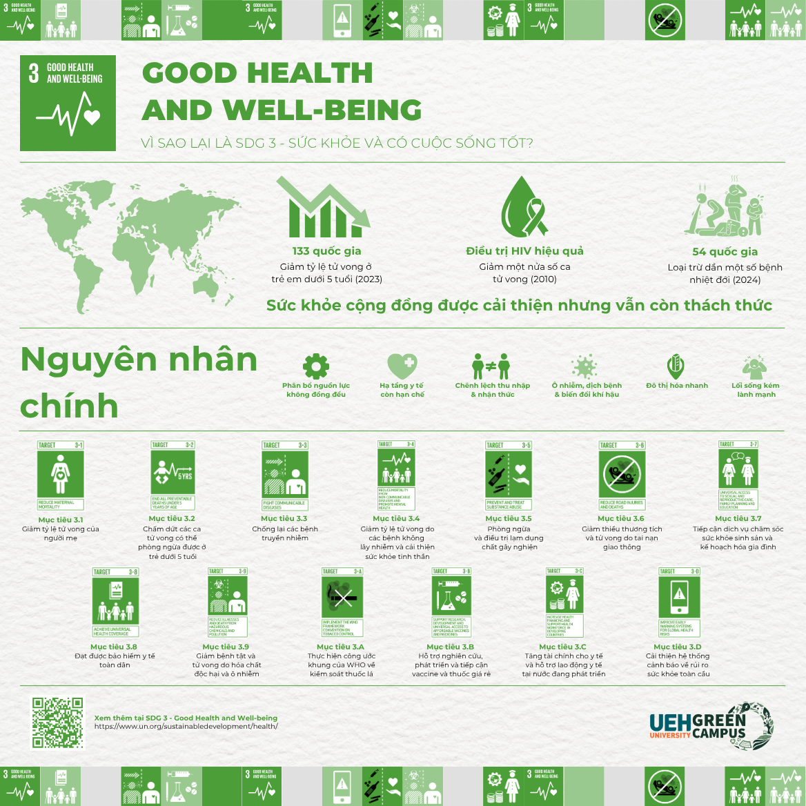 Đảm bảo cuộc sống khỏe mạnh cho tất cả mọi người là một hành trình đòi hỏi sự cam kết mạnh mẽ. Đây chính là khoản đầu tư bền vững cho tương lai, khi con người khỏe mạnh là nền tảng cho xã hội lành mạnh và kinh tế vững chắc. Trước những biến động khôn lường và thách thức ngày càng phức tạp về sức khỏe, việc hành động kịp thời và quyết đoán đã trở nên cấp thiết hơn bao giờ hết. Cùng với những nỗ lực không ngừng thông qua giáo dục và kết nối cộng đồng, UEH không chỉ kiến tạo môi trường học tập lành mạnh, mà còn góp phần lan tỏa nhận thức và hành động vì một cộng đồng khỏe mạnh, hạnh phúc và phát triển bền vững.
