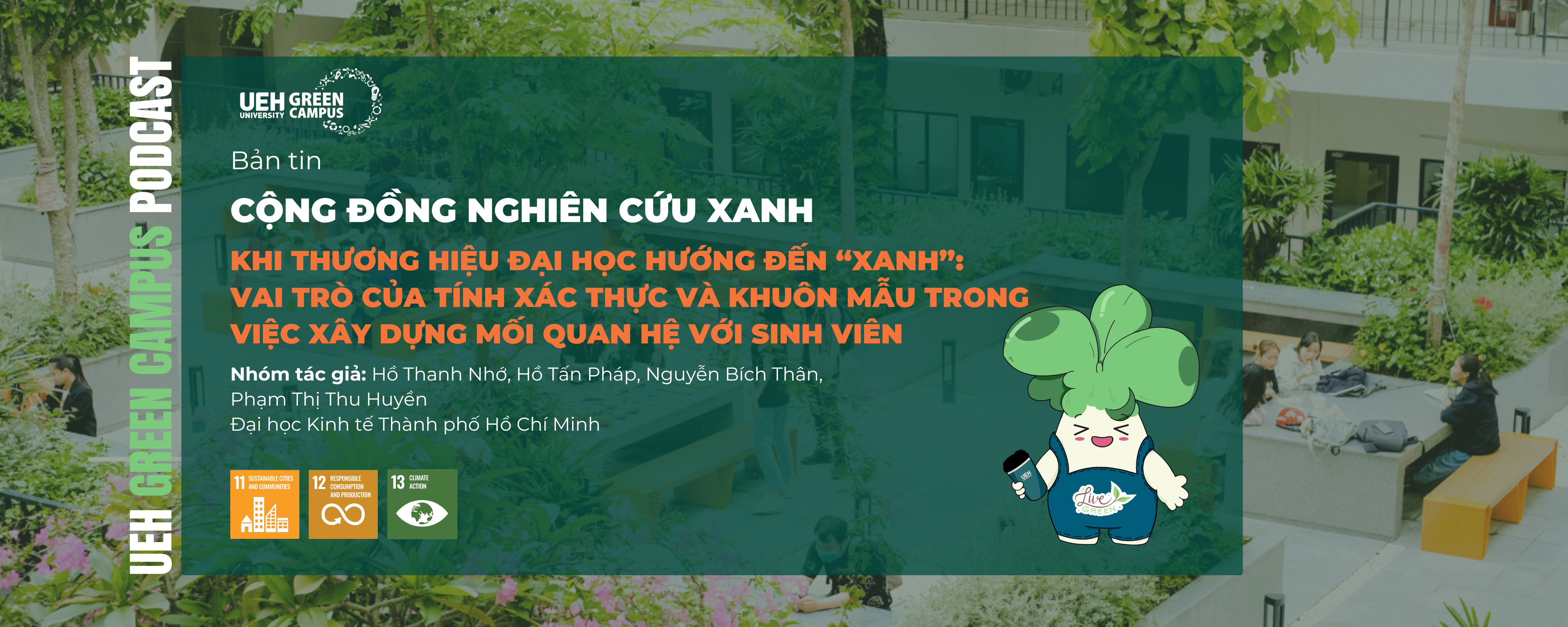 Trong bối cảnh toàn cầu đang đối mặt với khủng hoảng môi trường và yêu cầu cấp thiết về phát triển bền vững, các trường đại học với vai trò là trung tâm đào tạo và lan tỏa tri thức không thể đứng ngoài xu hướng “xanh hóa”. Việc xây dựng hình ảnh thương hiệu đại học thân thiện với môi trường không chỉ là trách nhiệm xã hội, mà còn trở thành một chiến lược quan trọng giúp thu hút sinh viên và nâng cao năng lực cạnh tranh trong lĩnh vực giáo dục đại học. Trong bối cảnh đó, nhóm nghiên cứu sinh viên Đại học Kinh tế Thành phố Hồ Chí Minh (UEH) đã thực hiện đề tài “Khi thương hiệu đại học hướng đến “xanh”: Vai trò của tính xác thực và khuôn mẫu trong việc xây dựng mối quan hệ với sinh viên” nhằm phân tích cách các yếu tố như tính xác thực và khuôn mẫu thương hiệu xanh ảnh hưởng đến niềm tin, tình yêu thương hiệu và nhận diện thương hiệu trong việc lựa chọn trường của sinh viên.