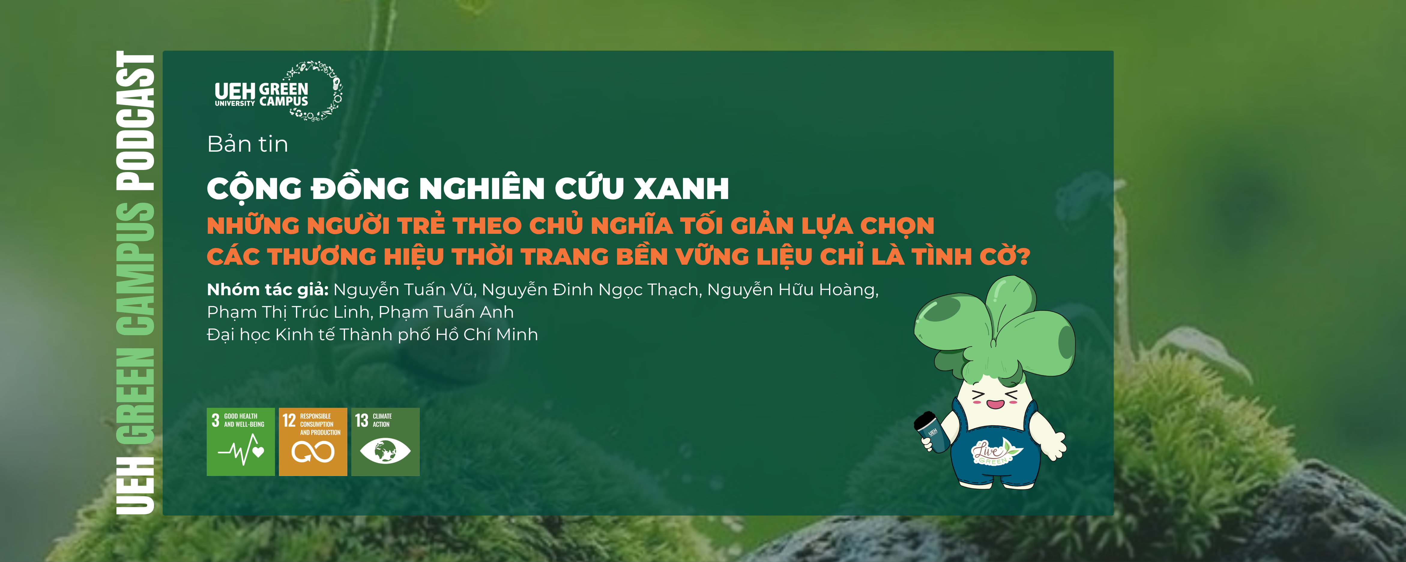 Đây là bài viết nằm trong chuỗi bài Cộng đồng nghiên cứu xanh với thông điệp "Research Contribution for UEH Living Lab Green Campus", UEH trân trọng kính mời cộng đồng cùng đón xem bản tin Cộng đồng nghiên cứu xanh tiếp theo.