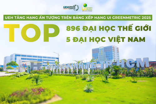 Năm 2025, Đại học Kinh tế Thành phố Hồ Chí Minh (UEH) tiếp tục ghi dấu ấn tích cực trên Bảng xếp hạng UI GreenMetric World University Rankings, với kết quả tăng hạng rõ rệt cả