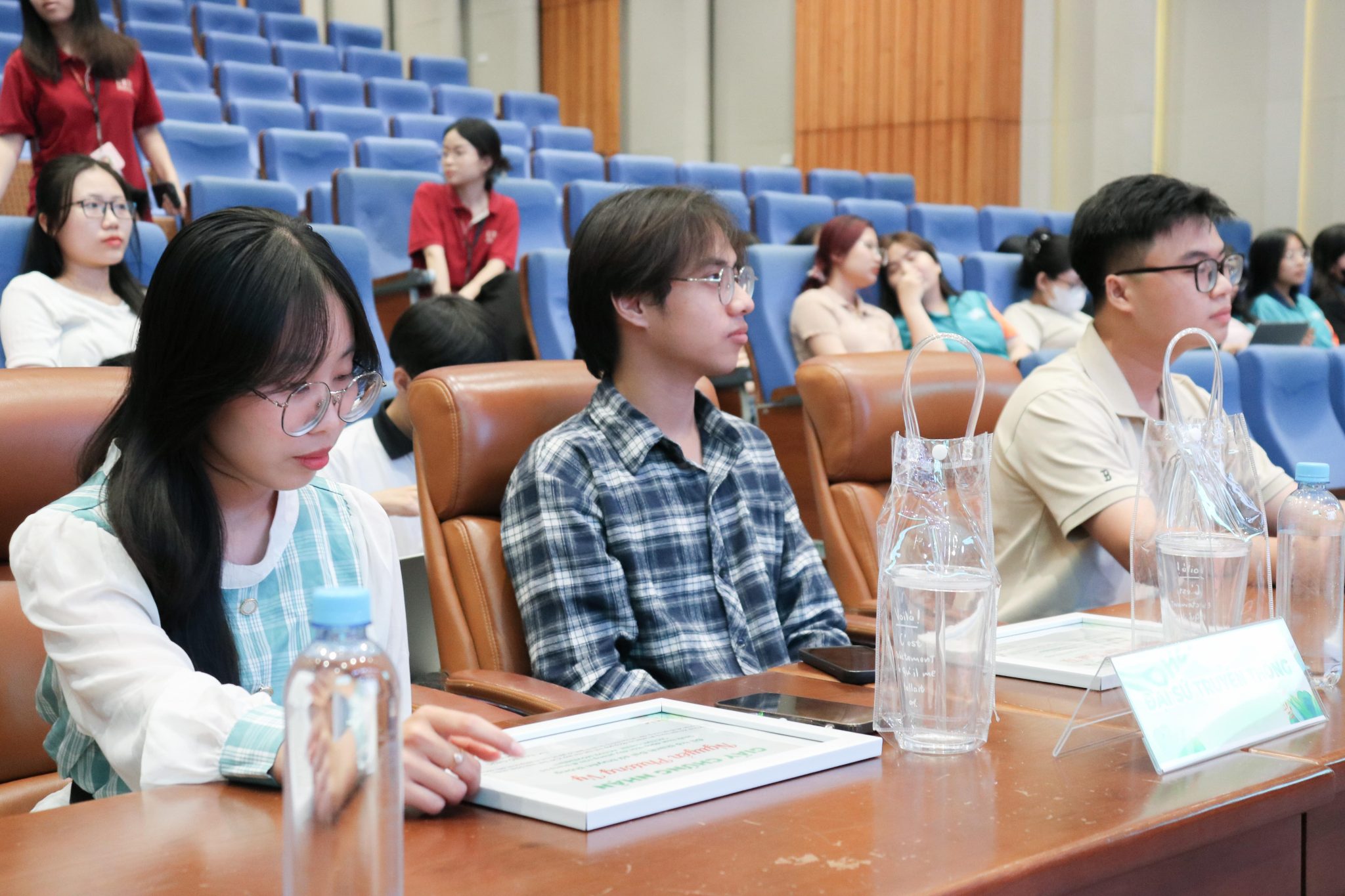 Buổi talkshow cũng diễn ra phần trao đổi chuyên sâu, nơi các diễn giả và đại sứ sinh viên cùng chia sẻ kinh nghiệm, ý kiến và quan điểm về các chủ đề như thách thức môi trường hiện nay, vai trò của thanh niên và các giải pháp thiết thực để thực hành lối sống xanh hơn, bền vững hơn, mang đến một cái nhìn toàn diện và sâu sắc về tương lai bền vững cho cộng đồng.
