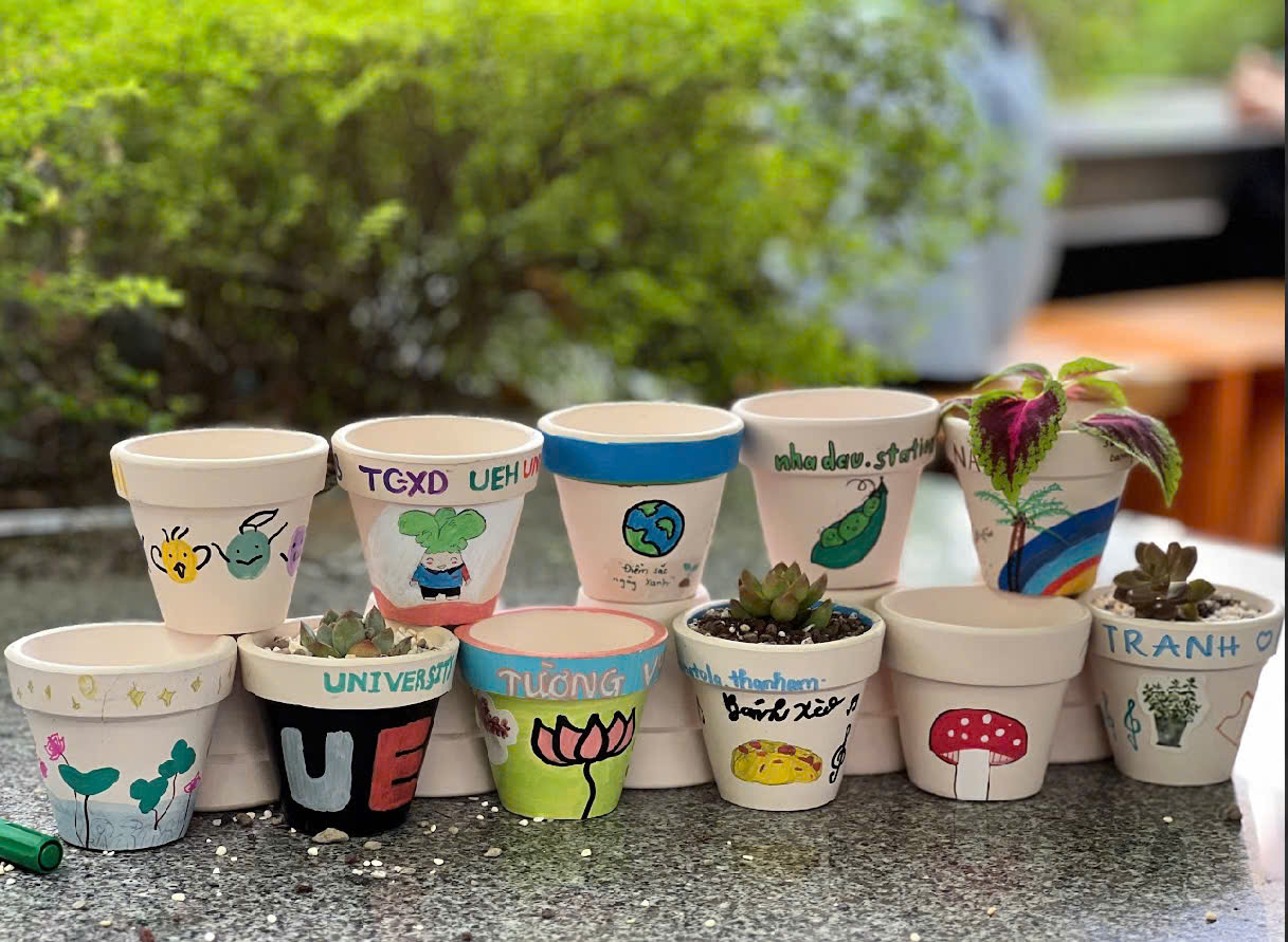 Hoạt động mang đến không gian để mỗi sinh viên được tự tay thiết kế, trang trí chậu cây theo dấu ấn cá nhân, từ đó khơi gợi sự kết nối giữa con người và thiên nhiên thông qua những hành động cụ thể, giản dị mà thiết thực. Mỗi chậu cây không chỉ là một tác phẩm nghệ thuật mà còn là biểu tượng của sự chăm chút, thấu cảm và cam kết sống xanh – đúng với tinh thần và định hướng của UEH Green Campus;