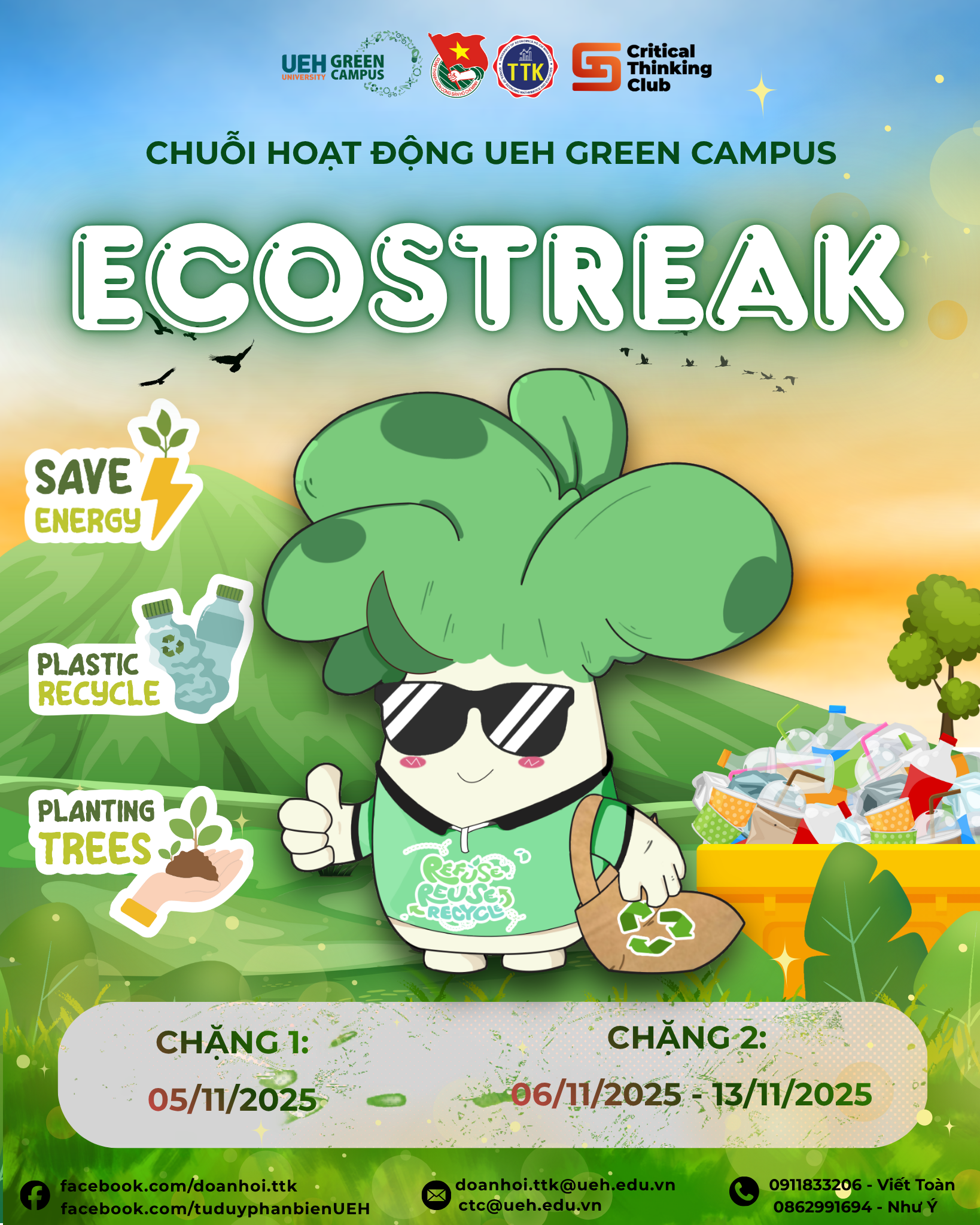 Hưởng ứng chuỗi hoạt động UEH Green Campus, Câu lạc bộ Tư duy phản biện UEH phối hợp cùng Đoàn khoa Toán – Thống kê tổ chức chương trình “ECOSTREAK” với th&