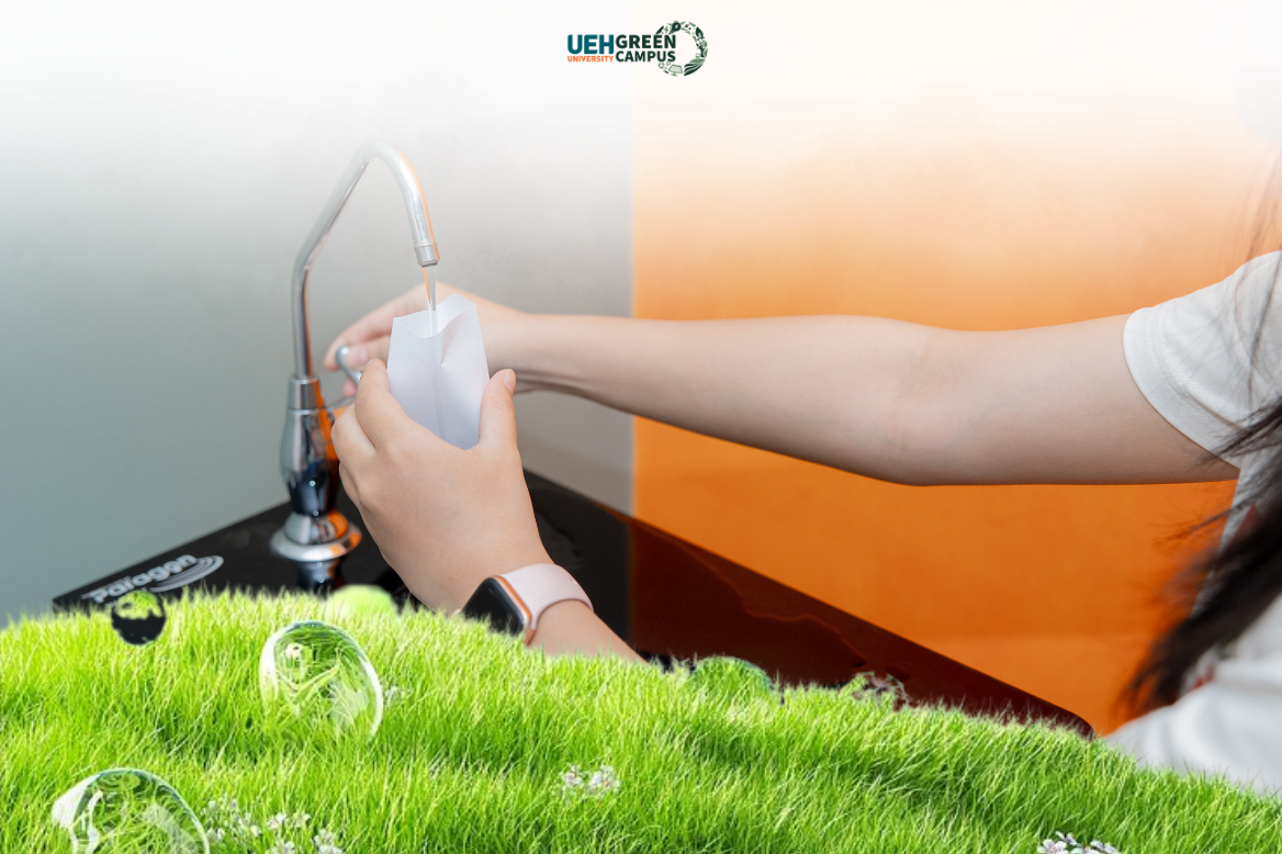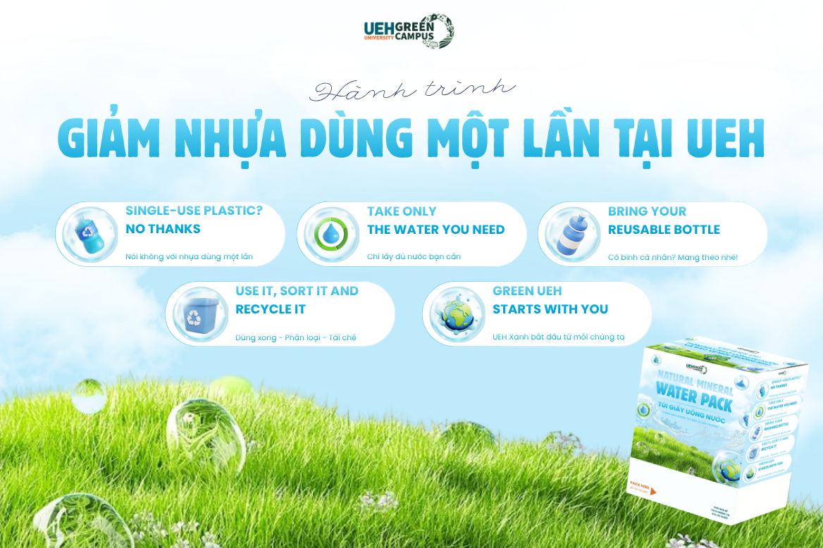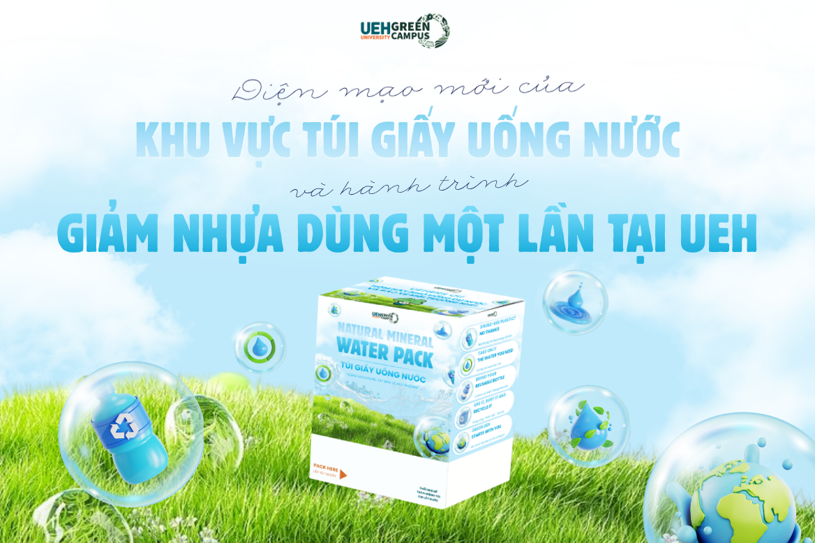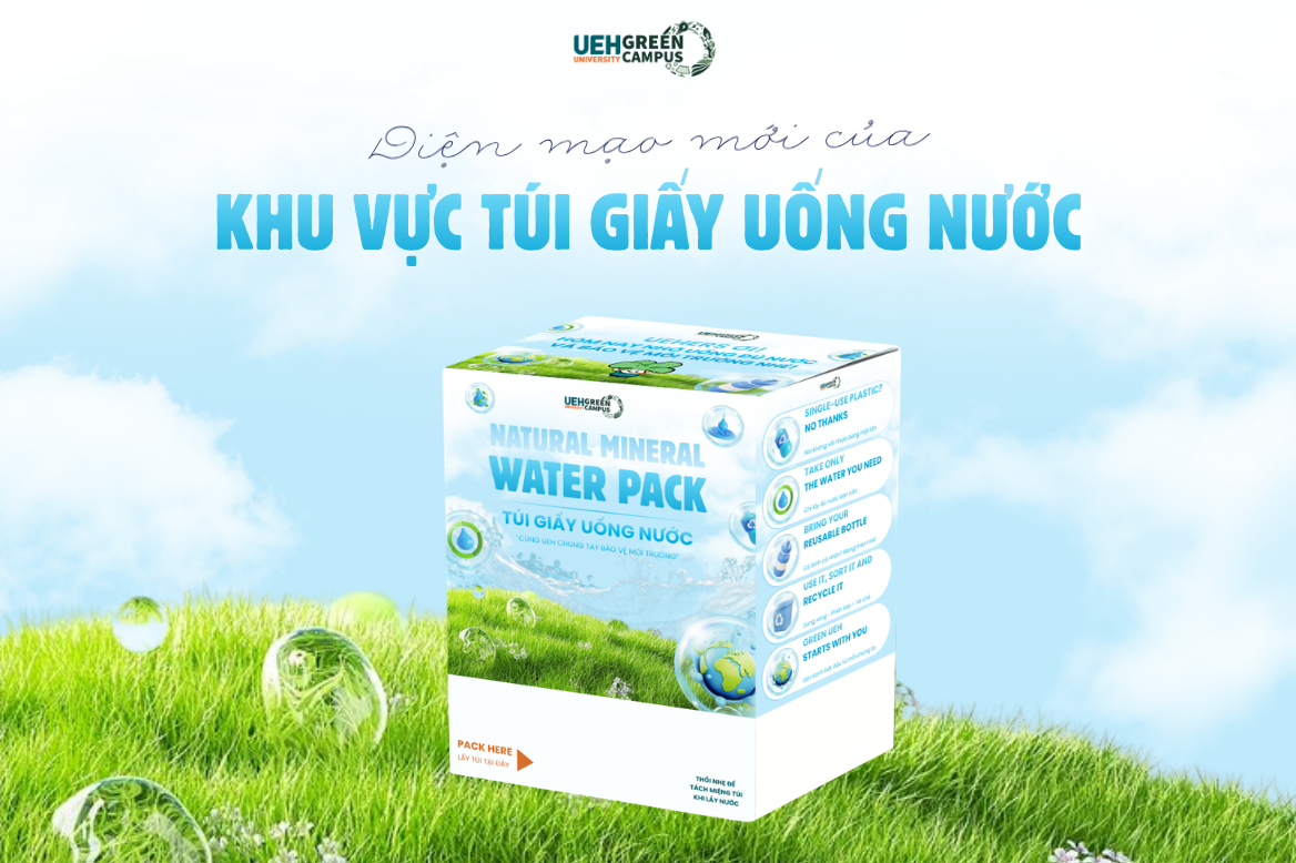 Với định hướng giảm thiểu nhựa dùng một lần và thúc đẩy lối sống xanh trong khuôn viên, Đại học Kinh tế Thành phố Hồ Chí Minh (UEH) đã làm mới diện mạo của khu vực túi giấy uống nước bằng hình ảnh trực quan, rõ ràng và thân thiện hơn. Việc thay đổi thiết kế cùng với các lời kêu gọi hành động vì môi trường không chỉ tăng khả năng nhận diện mà còn đóng vai trò như một điểm truyền thông nhỏ, nhắc nhở cộng đồng về trách nhiệm với môi trường.