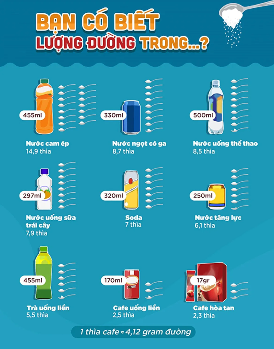 3. Bệnh viện Đa khoa Hồng Ngọc. Lượng đường trong nước ngọt. https://dantri.com.vn/suc-khoe/uong-1-lon-nuoc-ngot-300ml-ban-da-nap-vao-nguoi-30-40g-duong-20230323145656716.htm