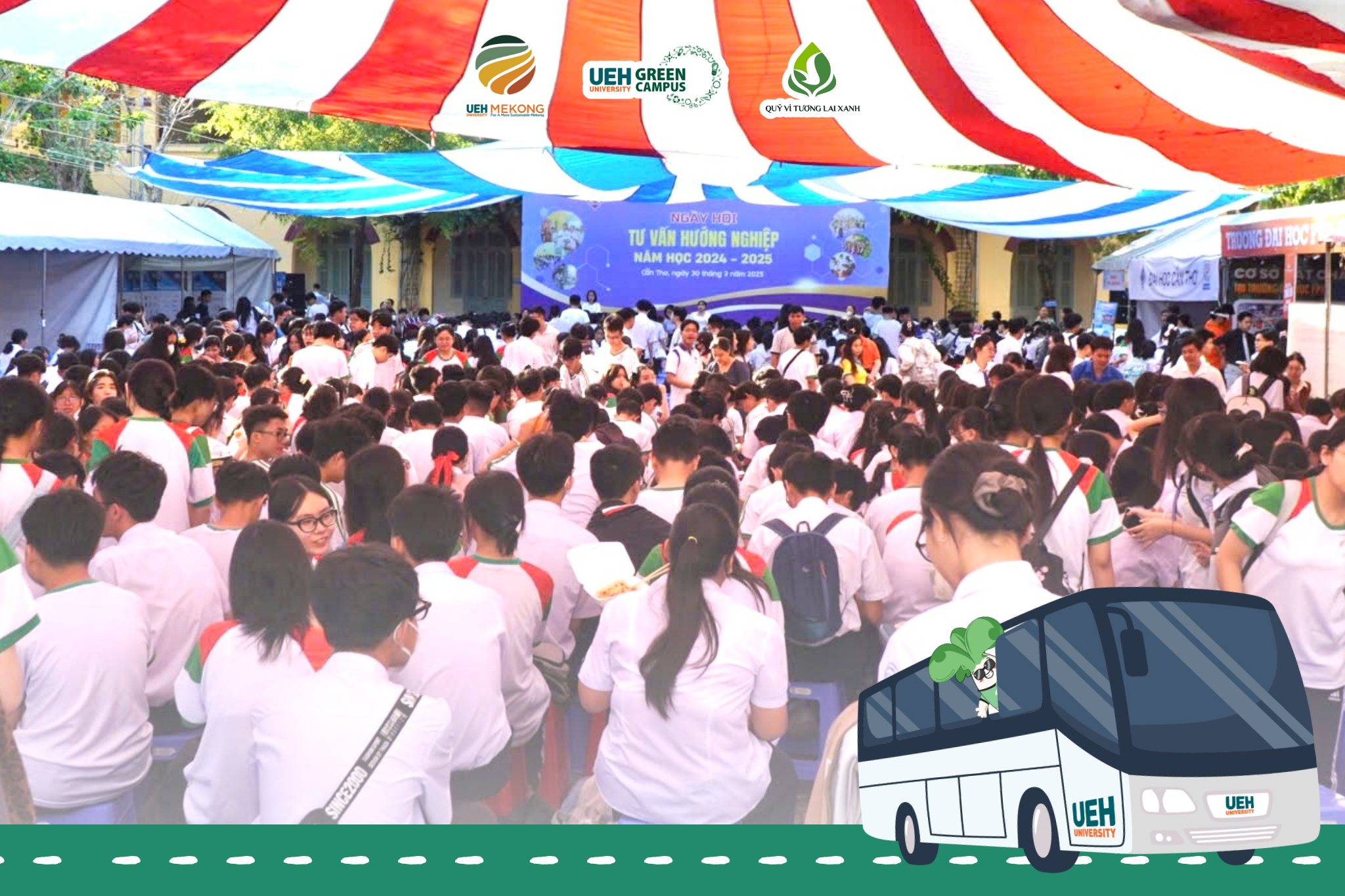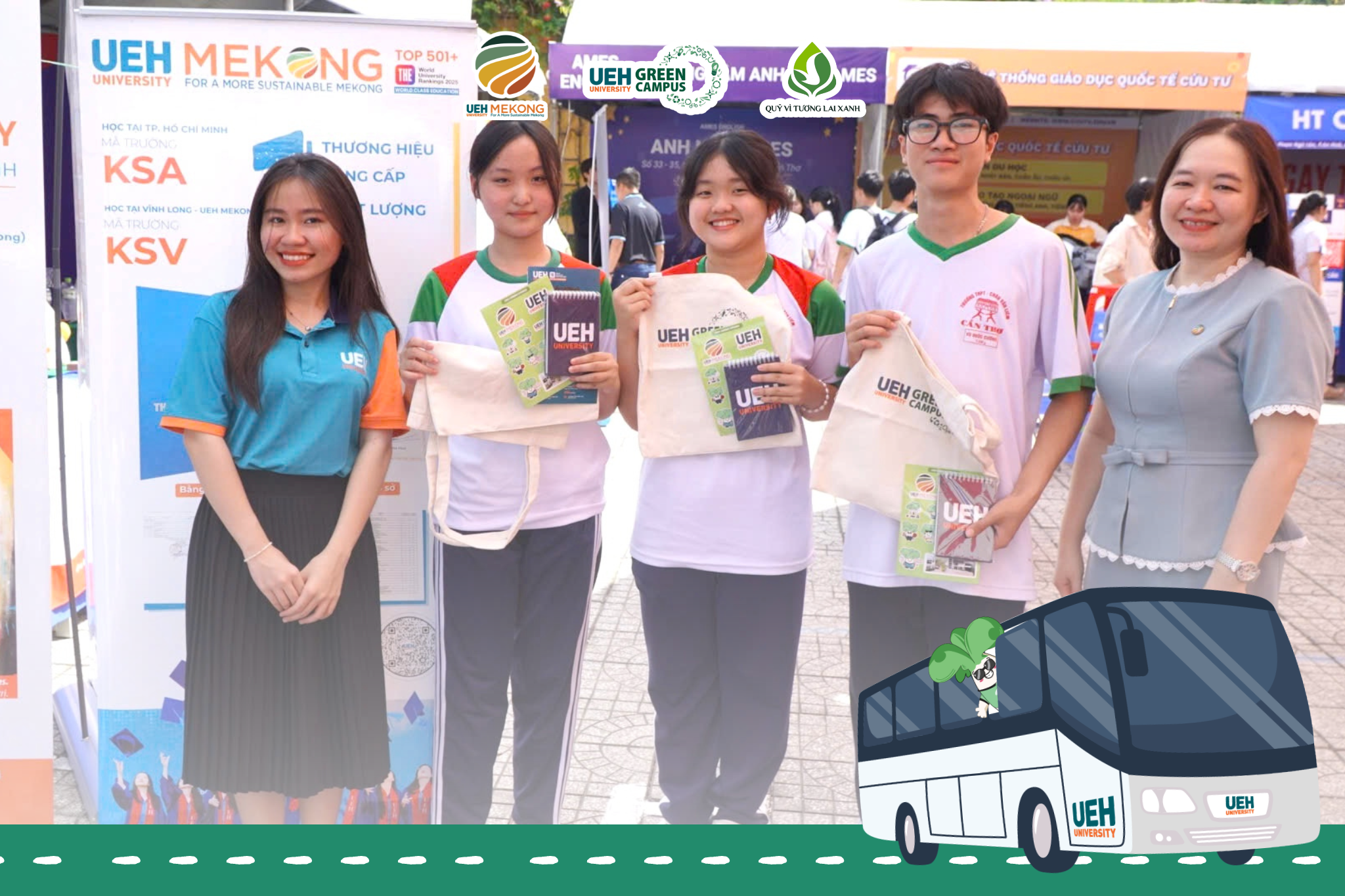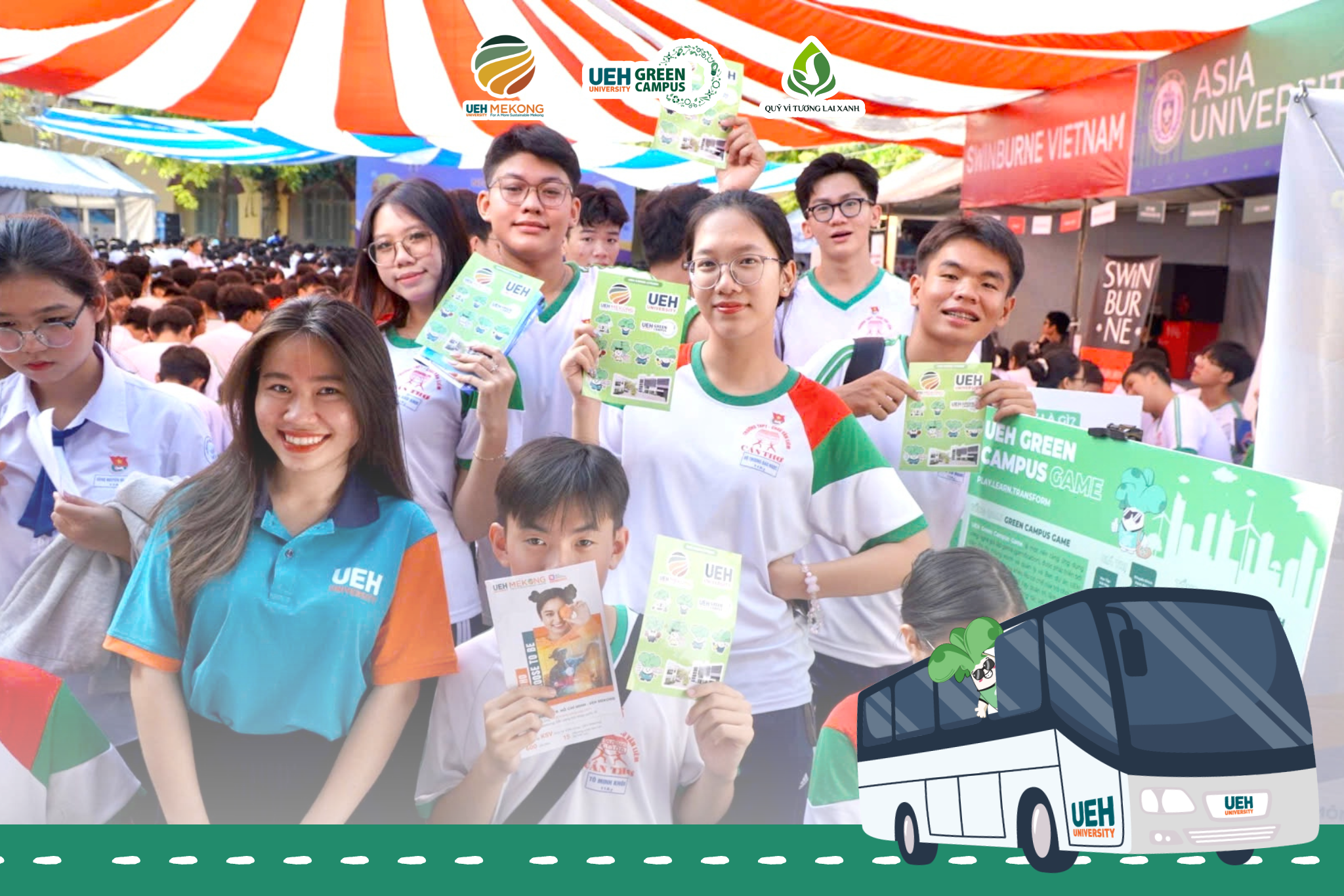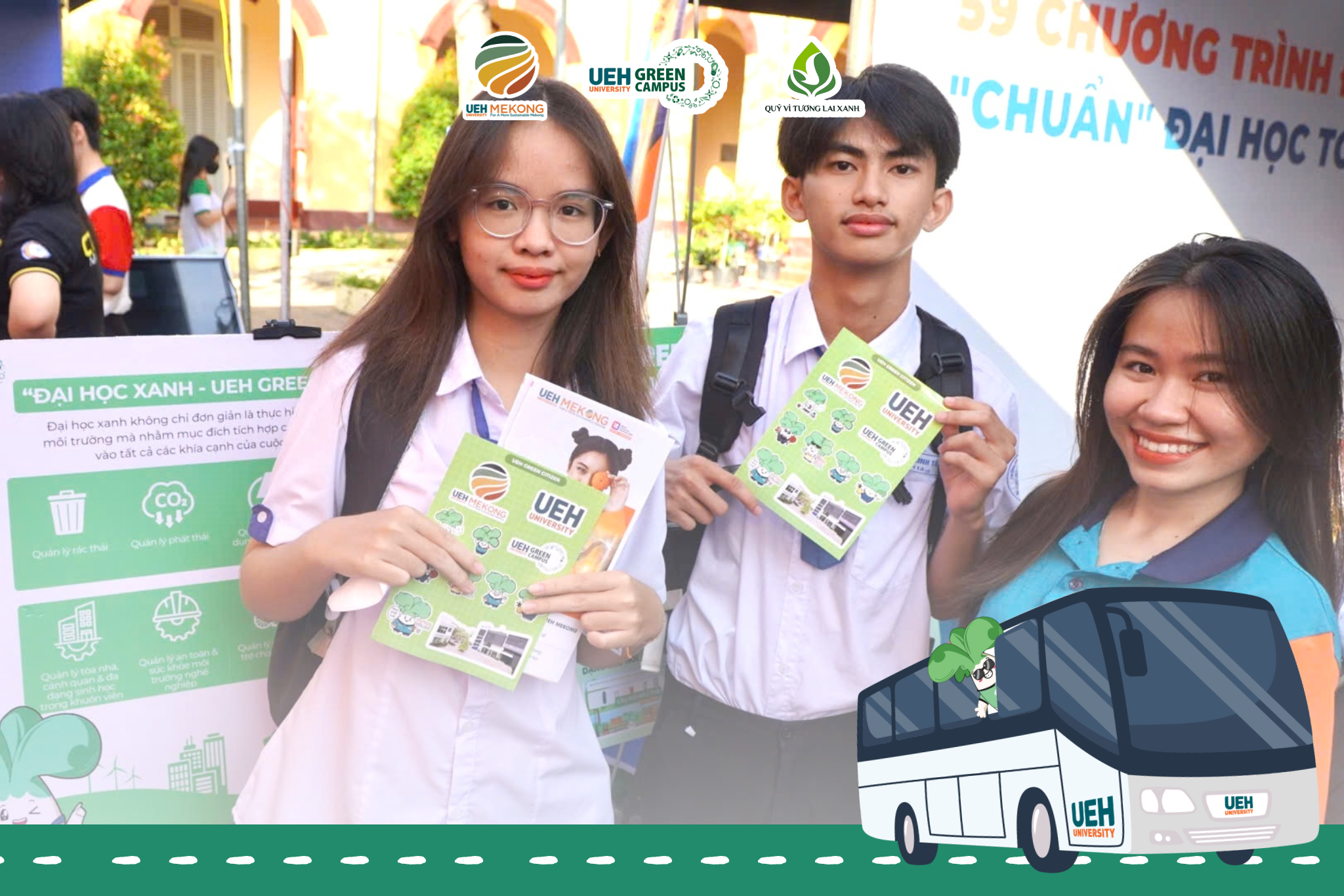 Cũng trong dịp này, Let’s Green Unitour - một sản phẩm thuộc Dự án UEH Green Campus và là một phần trong chiến dịch Học kỳ Xanh - Kiến tạo cộng đồng Xanh của Quỹ Vì tương lai Xanh thuộc Tập đoàn Vingroup - đã đồng thời mang đến cho các bạn học sinh tại Trường THPT Châu Văn Liêm (Cần Thơ) cơ hội tìm hiểu về Mô hình Đại học Xanh UEH. Tại đây, không gian triển lãm về Hệ sinh thái các sản phẩm UEH Green Campus, những hoạt động tương tác và trải nghiệm sáng kiến quản lý rác thải thông minh cũng như hoạt động đổi rác lấy quà đã giúp các bạn học sinh vừa học tập, vừa thực hành thói quen bền vững một cách gần gũi và sinh động.