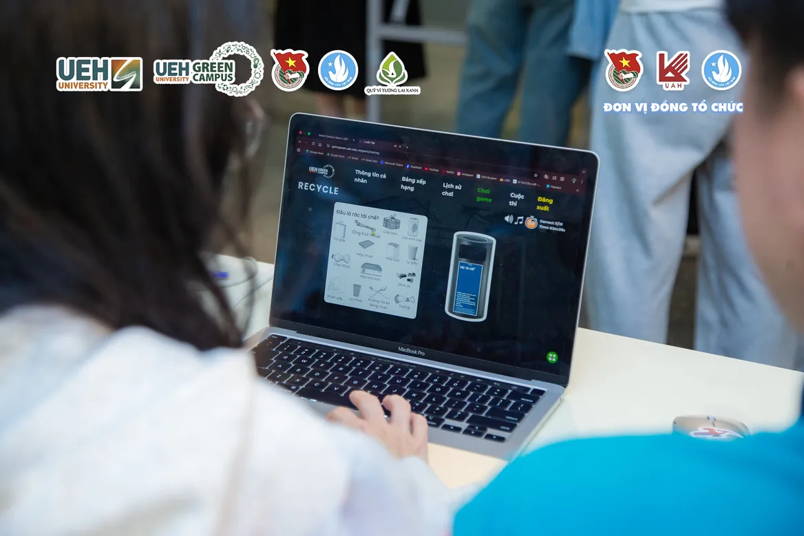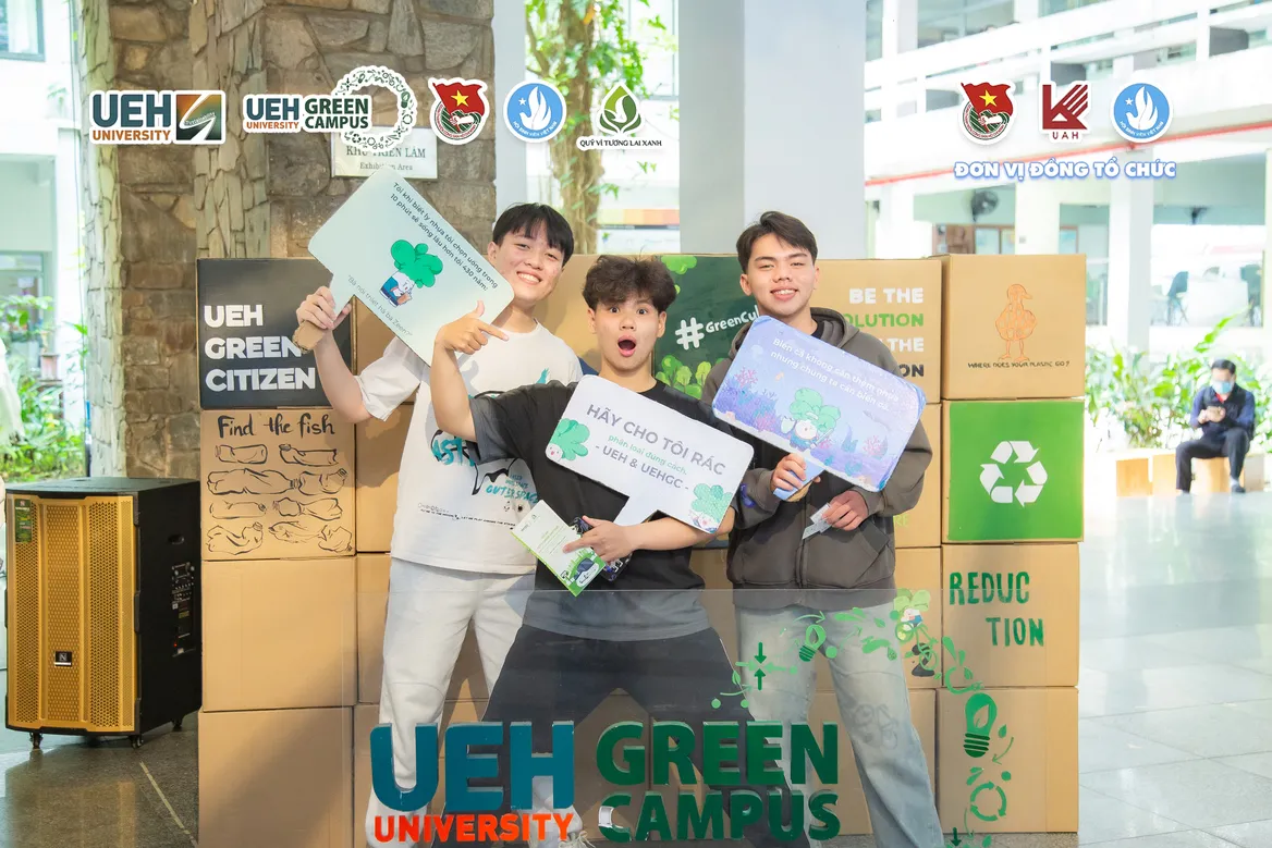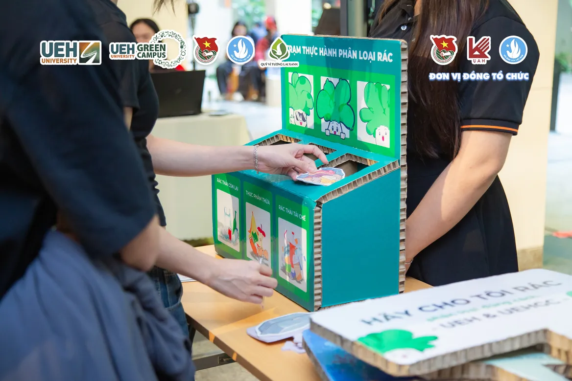 - Khu vực 2 - Trải nghiệm UEH Green Campus - Game và thực hành xanh: Nơi các bạn sinh viên được hướng dẫn và thực hành phân loại rác theo Mô hình 3 của UEH Green Campus - Go Green Station. Đồng thời trải nghiệm giải pháp đổi mới sáng tạo “gamification” nhằm tiếp cận các khái niệm sống xanh, bảo vệ môi trường và phát triển bền vững một cách gần gũi và sinh động hơn.