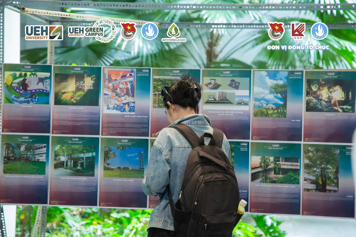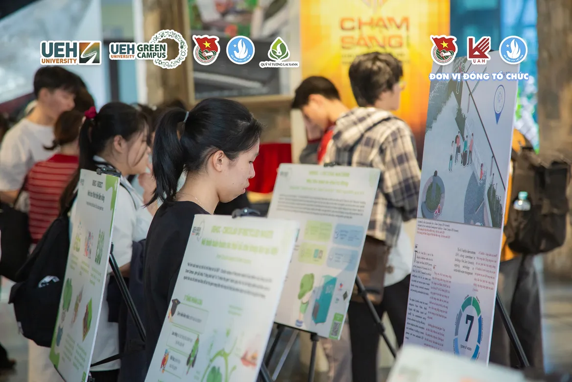 - Khu vực 1 - Triển lãm Mô hình Đại học Xanh UEH Green Campus: Không gian trưng bày các infographic, cung cấp góc nhìn tổng quan về Hệ sinh thái các sản phẩm Đại học Xanh UEH Green Campus cũng như định hướng phát triển bền vững mà UEH đang theo đuổi.