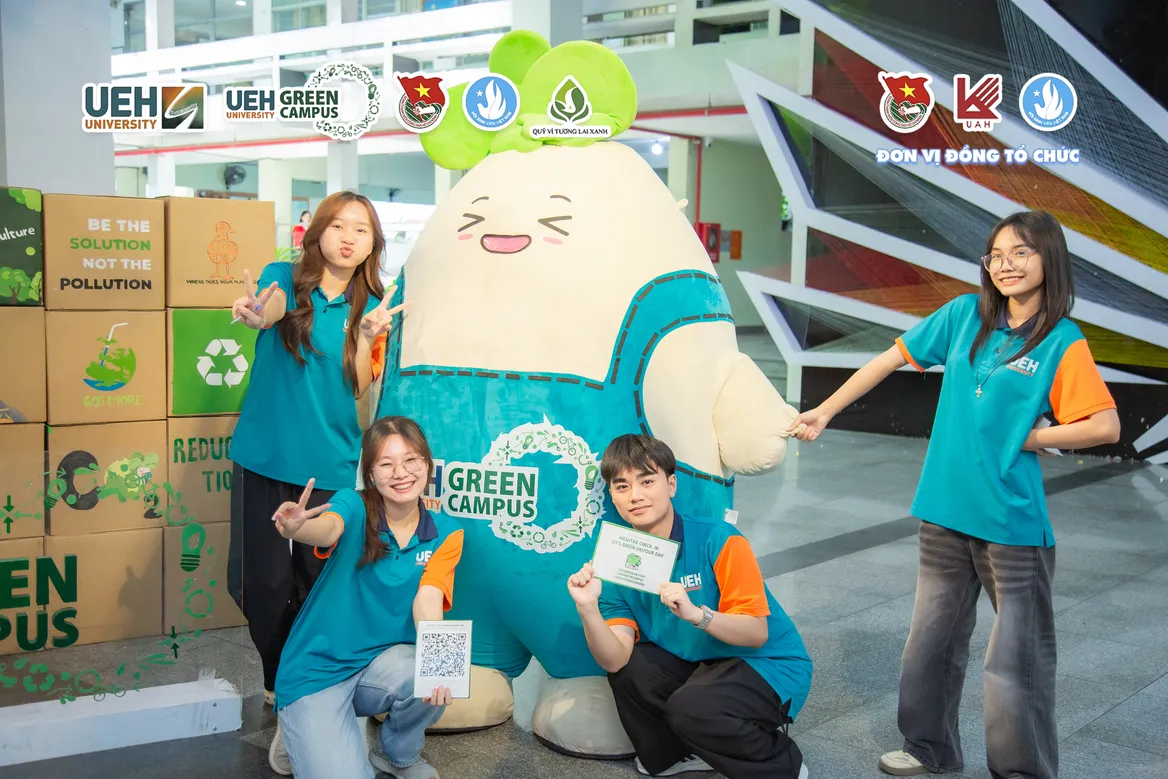 Thuộc khuôn khổ Dự án Let’s Green Unitour cùng sự đồng hành từ Quỹ Vì tương lai Xanh thuộc Tập đoàn Vingroup, Ngày hội Let’s Green Unitour Day 2025 - Trải nghiệm một ngày trở thành sinh viên Đại học Xanh đã mang đến cho các bạn sinh viên một hành trình khám phá toàn diện về Mô hình Đại học Xanh UEH. Từ khu vực triển lãm trưng bày các infographic, hoạt động “gamification” kết hợp thực hành phân loại rác đến những tác phẩm nghệ thuật tương tác độc đáo. Tất cả đã cùng nhau tạo nên không gian sinh động và gần gũi, giúp sinh viên không chỉ hiểu rõ hơn về những kiến thức liên quan đến môi trường mà còn được truyền cảm hứng để trở thành những “đại sứ” lan tỏa tinh thần sống xanh tại trường học và cộng đồng.