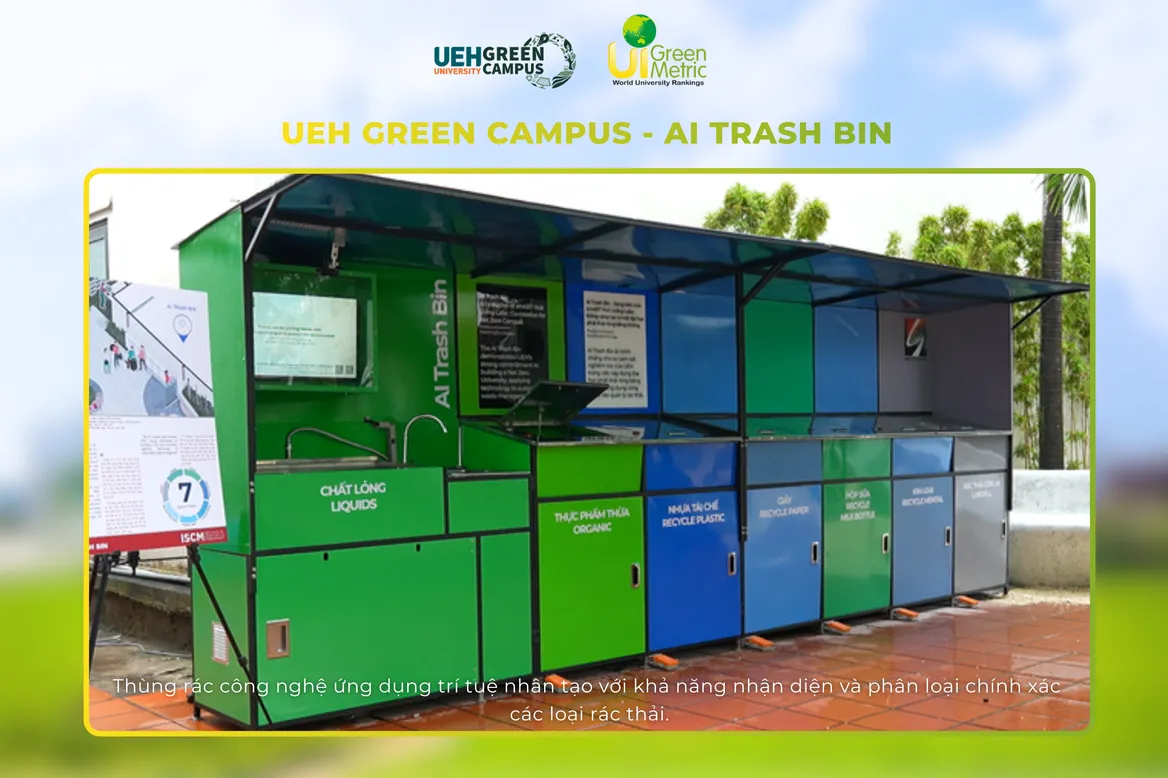 Trong giai đoạn vừa qua, đã có hơn 75% chương trình thực hiện theo nguyên tắc 3R (Reduce: Tiết giảm - Reuse: Tái sử dụng - Recycle: Tái chế) và gần 10 chương trình giảm lượng giấy và nhựa thải ra được tổ chức tại các khuôn viên của UEH. Đặc biệt trong năm 2024, UEH đã thành công tái chế gần 92% lượng rác thải, khẳng định cho những nỗ lực của UEH trong việc xây dựng khuôn viên học tập xanh, góp phần hình thành thói quen bền vững và tinh thần trách nhiệm với môi trường trong cộng đồng sinh viên. Nổi bật trong Hệ sinh thái sản phẩm Đại học Xanh có thể kể đến như Trạm thực hành phân loại rác Go Green Station, ứng dụng nhận diện rác Zeen AI Scan, thùng rác ứng dụng trí tuệ nhân tạo giúp nhận diện và phân loại rác AI Trash Bin, máy thu gom chai nhựa và lon nhôm tự động i Ve Chai Machine nhằm phân loại rác thải tại nguồn, đảm bảo cho khuôn viên sạch đẹp. Ngoài ra, UEH còn tích cực kết hợp kiến thức đa ngành, đa lĩnh vực trong thay đổi nhận thức và hành vi sống xanh của cộng đồng như UEH Green Campus Game, Green Monday Series cùng với những hoạt động truyền thông, tuyên truyền khác.