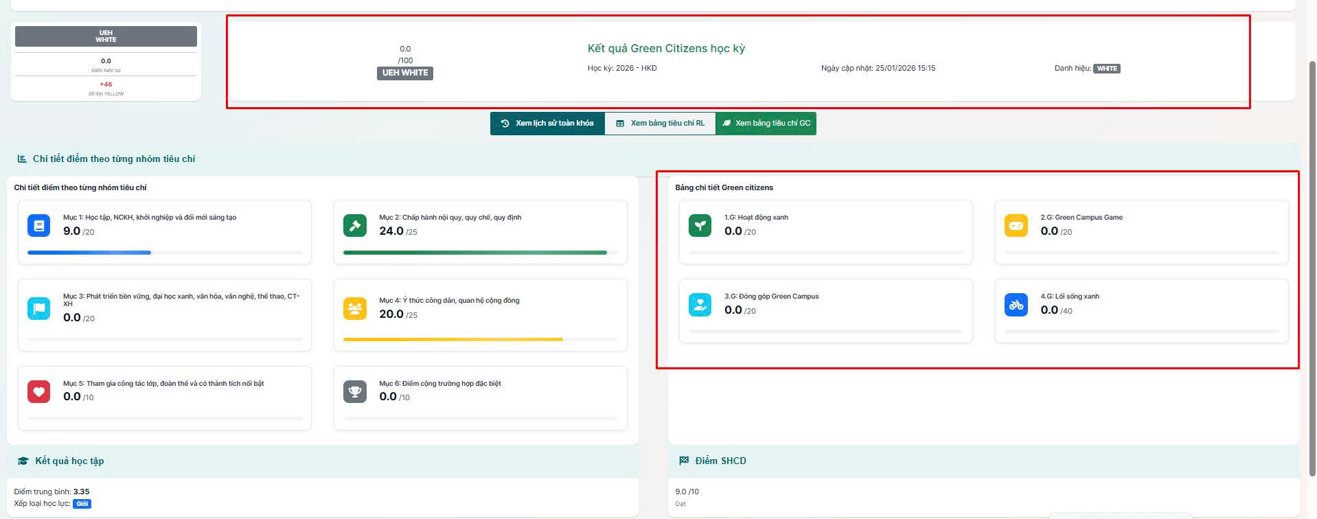 - Bước 2: Sinh viên đạt đủ Điểm Xanh sẽ đạt danh hiệu Công dân Xanh UEH