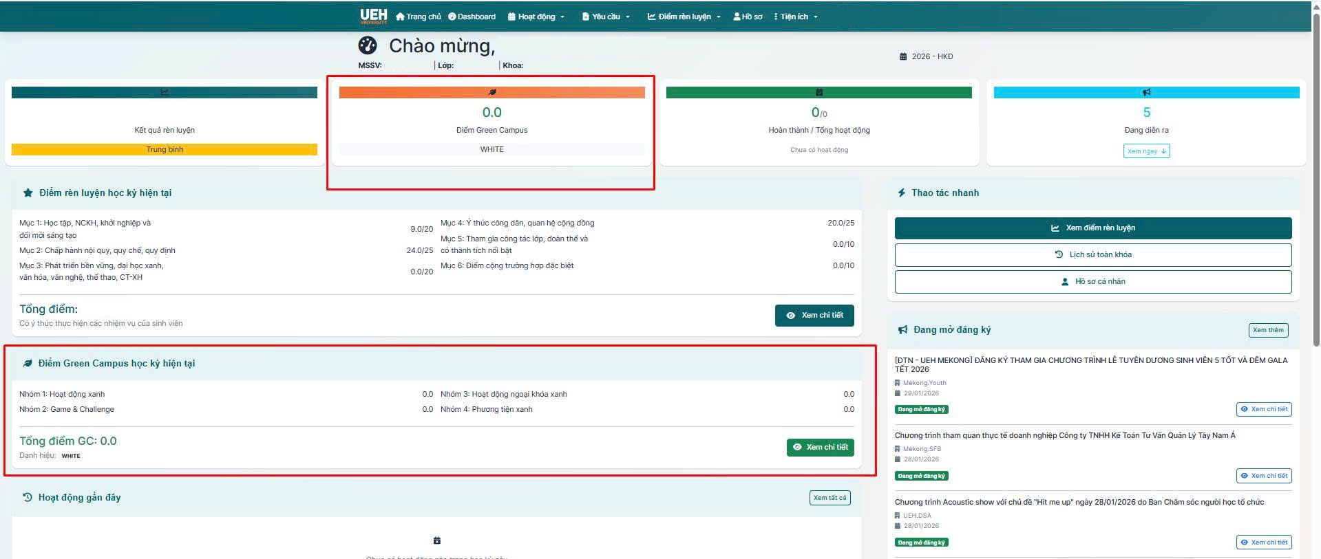 Hệ thống ghi nhận Điểm Xanh trên ứng dụng sinh viên UEH Student